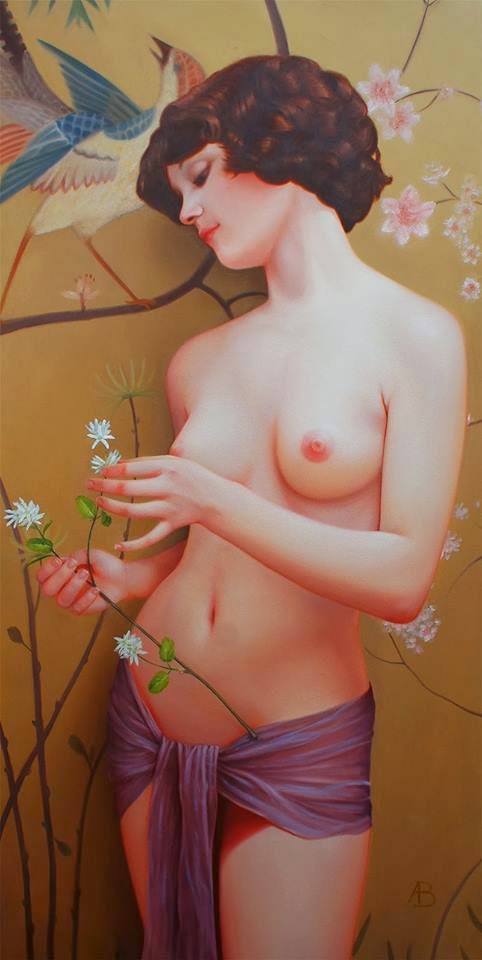 El trabajo de Andrew está influenciado por muchos grandes artistas, desde Bouguereau y Godward hasta Waterhouse y Leighton, pero aún está abierto a técnicas e ideas más contemporáneas, incluidas en su lista de artistas favoritos a personas como Chuck Close y Gottfried Helnwein.